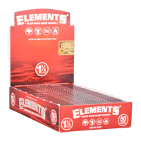 This Elements Red Slow Burn Hemp Rolling Papers booklet features 50 1-1/4" all-natural hemp rolling papers that burn slow and smooth due to its watermark. An all-natural sugar gum line is the only thing that produces ash as it caramelizes. NOTE: Elements Red rolling papers are not red in color- they are Earth toned.