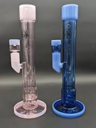 The Transporter Kicked Straight Tube Glass Water Pipe from Pulsar provides a delightful smoking experience with its double walled build. Made with quality borosilicate glass, the pipe has a turbine percolator and a transparent colored glass body with opaque color accents. Measures 14 inches (35.6cm) tall. Includes a matching 14mm male herb slide. Multiple color options available.